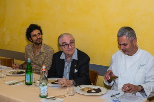Gualtiero Marchesi al tavolo della giuria della prima edizione del concorso con Marco Bianchi e Pietro Leemann