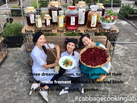 Sono Hui-ting, Lin, una cuoca di Taiwan. Lavoro al ristorante Cabbagecookinglab, fondato da due donne, Hua-hui, chen e Chung-hui, chen amiche della natura e appassionate del cibo tradizionale taiwanese. Sopra il nostro ristorante abbiamo un giardino pensile dal quale ogni mattina raccogliamo erbe e piccole foglie per personalizzare i nostri piatti con ingredienti certificati! Siamo convinte che per godere dei sapori e delle consistenze del cibo taiwanese la prima cosa da fare sia andare in una bella famiglia e lì incontrare la loro Madre. Le madri sono dotate di un’immaginazione superiore nel creare meravigliosi sapori usando ingredienti freschi. E noi, appunto, siamo sempre molto attente all’origine degli ingredienti, che usiamo!! Ci rechiamo spesso in campagna per fare visita agli agricoltori e cercare ovunque il cibo locale di stagione. Poi portiamo questi buoni prodotti al ristorante per cucinare in stile rustico, regalando così ai clienti il ricordo dei piatti che la mamma ci cucinava quando eravamo piccoli. Abbiamo intrapreso questo percorso per avere certezza e conoscenza delle origini del cibo che usiamo, sia esso biologico o comunque coltivato nel rispetto dell’ambiente, e garantendo agli animali un trattamento umano. Ci eravamo rese conto che una parte del nostro cibo proveniva da allevamenti industrializzati o da agricoltura, che adottava metodi di coltivazione non naturali usando pesticidi per aumentare artificialmente la produzione.