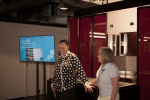 Hitoshi Sugiura a TVC 2019 durante il suo show cooking. A destra Jenny Sugar, che lo ha presentato