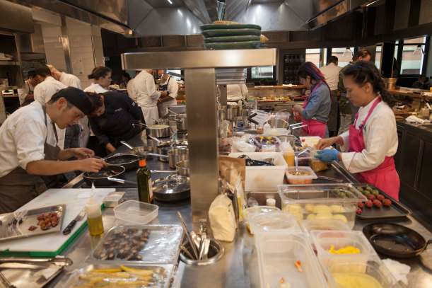 I cuochi al lavoro per il concorso nella cucina del ristorante di EDIT