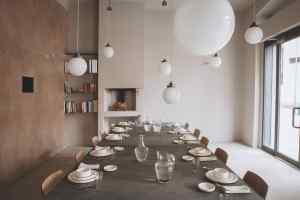 L’idea è quella di dare una sensazione di ospitalità ricorrendo al design moderno, che a Milano è di tendenza, a volte anche troppo. C’è un camino, simbolo tradizionale di ospitalità, ma non è dominante e quasi non si vede. Lo si nota in menu dove è proposto il piatto Camino: patata americana cotta nell’argilla, pane speziato e terrina di peperone. Grigio e bianco sono dominanti e le luci sono discrete e flessibili. Argille italiane e terre crude rifiniscono le pareti: “un rivestimento contemporaneo ispirato all’antichità”, spiegano le ragazze. Un’attenzione particolare è stata dedicata ai tavoli prodotti con materiali naturali e di recupero e pensati per la condivisione, una tendenza cittadina non sempre appropriata.