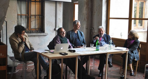 Tommaso Arrigoni, Gabriele Eschenazi, Pietro Leemann, Renato Mannheimer, Jenny Sugar alla conferenza stampa del 3 maggio alla Cascina Cuccagna