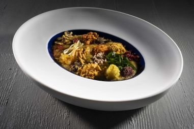Il progetto partito inizialmente come catering, da qualche anno, è diventato un ristorante dove si viene per vivere un’esperienza e anche un po’ giocare. La cucina è vegetariana (vegana su richiesta) e si distingue per la cura nella presentazione e l’accostamento delicato dei sapori. Anche per queste cuoche il territorio è molto importante e ultimamente la loro area di elezione è diventata la Valtellina definita «un luogo dell’anima» e dove hanno trovato nuovi amici produttori. A Identità Golose hanno presentato per primo Tarè, una rappresentazione del suolo dopo il disgelo a base di orzo, che in Valtellina le famiglie mangiano tutte insieme da una grande ciotola in pietra con un cucchiaio in legno. Nel piatto arriva prima la terra che consiste in polvere di salvia, aglio alla brace, glassa di mele selvatiche, riduzione di aceto e foglie di cavolini di Bruxelles. Sopra questa “terra” viene successivamente appoggiato un orzotto mantecato con burro e parmigiano. Da notare che per far vivere ai commensali un’esperienza valtellinese completa, bicchieri e recipienti sono stati realizzati da artigiani locali su progetto della designer Maddalena Salvini.