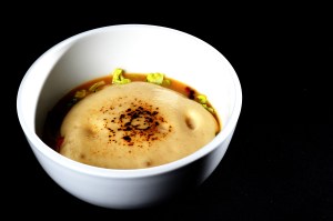 Brodo di cocco, lemongrass e il nostro yuzugotcho servito molto caldo, shitaké e batate grigliati, gratinato con panna di sedano di Verona